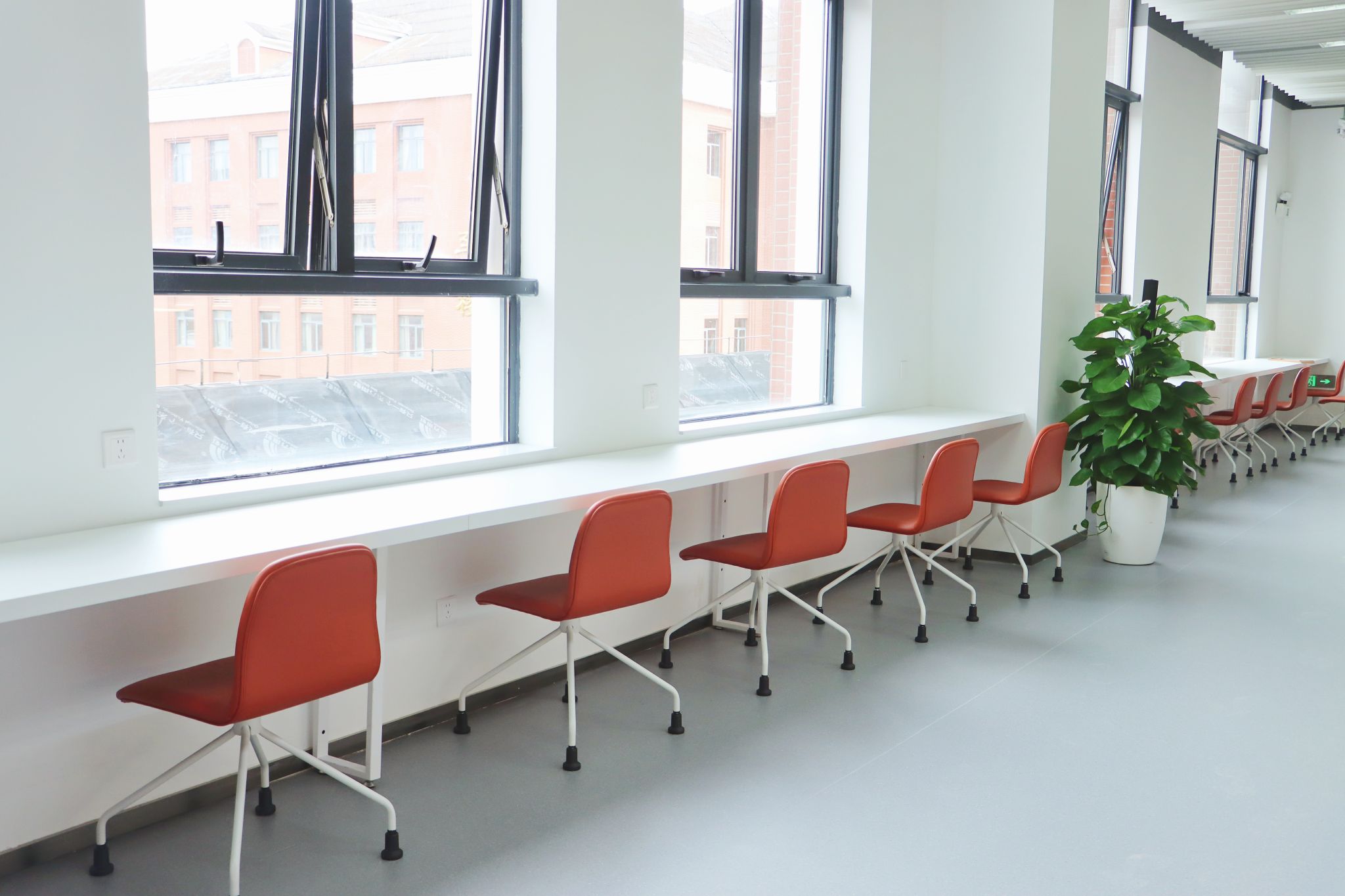 北区北侧的长排靠窗阅览座位,可凭窗远眺浩瀚大海。浪涛阵阵,书香为伴,是激发灵感、沉淀思绪的绝佳位置。