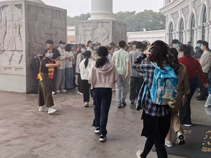 全体参演师生按照预定疏散路线,迅速而有序地从馆内撤离至馆外指定安全集结点,为整场演练画上圆满句号。