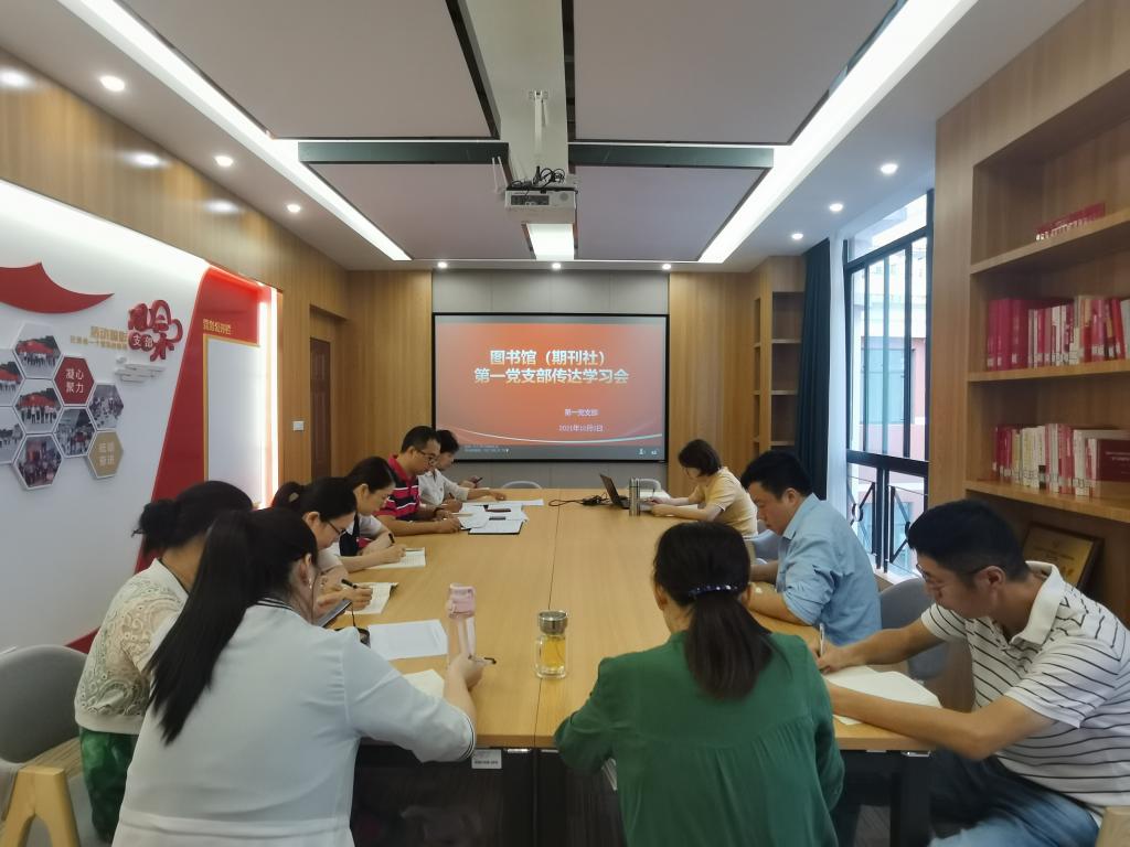 10月9日上午,图书馆(期刊社)第一党支部在A418召开专题学习会,传达学习上级会议及文件精神,一支部全体党员参会学习,会议由党支部书记孙发主持。