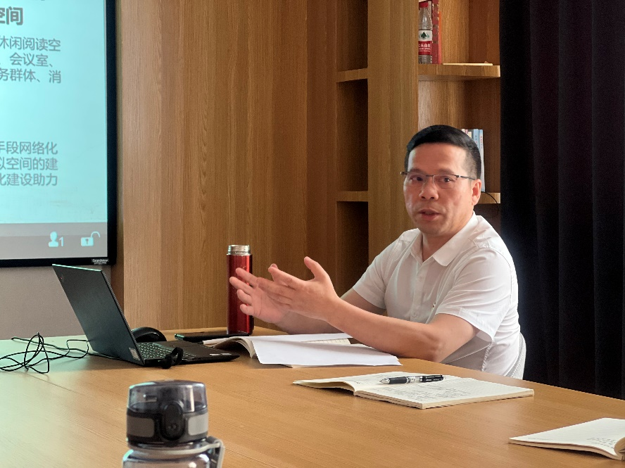 党总支委员、副馆(社)长虞建荣同志做了《践行服务初心、增强服务本领,积极推动图书馆高质量发展》专题党课。虞建荣同志首先深刻阐述了为什么要开展主题教育,主题教育的要求、目标和任务,以及如何高质量完成主题教育。在此基础上,虞建荣同志结合自己的分管工作,以图书馆人的初心使命为切入点,大谈如何重构新时代的图书馆空间,打造图书馆空间服务体系。并从“六个更加”,即“更加注重需求导向”“更加注重文化传承和创新”“更加注重特色发展”“更加注重数字化发展”“更加注重多样化服务”和“更加注重增长本领”来阐释如何推进图书馆高质量发展。
