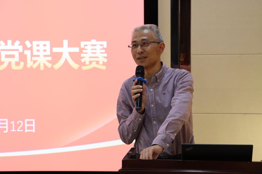 外国语学院党总支书记陈明龙对整场比赛做出点评,充分肯定和高度赞扬了参赛选手的精彩表现。他建议各位参赛选手要更加注重讲授对象、党课内容的设计。他强调要继承共产党人的优良传统,从百年党史中挖掘精神动力,从红色基因中汲取智慧和力量,学用结合、担当作为,当好“重要窗口”建设者、维护者、展示者。