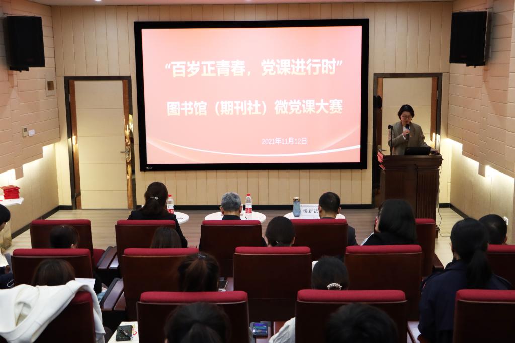 为庆祝中国共产党成立100周年,传承红色基因,弘扬伟大建党精神,深入开展党史学习教育,11月12日下午,图书馆(期刊社)举办“百岁正青春,党课进行时”微型党课大赛。比赛邀请到外国语学院党总支书记陈明龙、校团委副书记林文诗、馆(社)长楼新法担任评委,图书馆(期刊社)党总支书记陈慧、馆(社)领导班子成员及馆社全体党员、科室负责人观看了本次比赛。