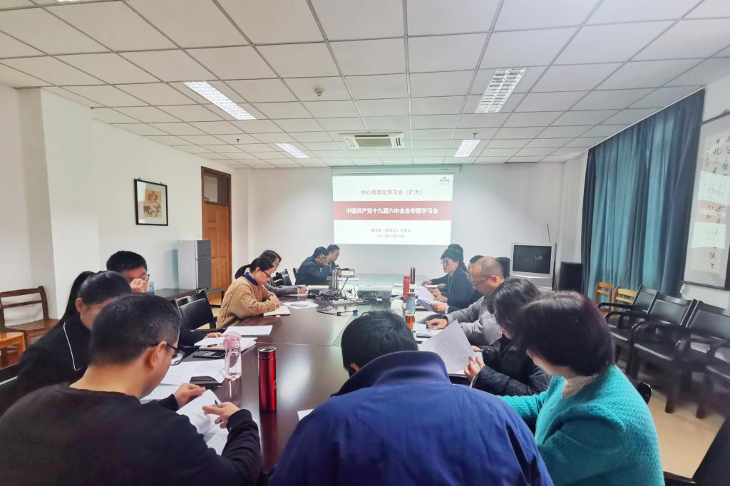 11月18日下午,图书馆(期刊社)党总支召开理论学习中心组(扩大)学习会议,专题学习党的十九届六中全会精神。理论学习中心组全体成员、党支部书记、各科室科长、编辑部主任及办公室相关人员参会学习,党总支委员毛文明领学党的十九届六中全会公报和《中共中央关于党的百年奋斗重大成就和历史经验的决议》,党总支书记陈慧主持会议并就学习贯彻全会精神作部署。